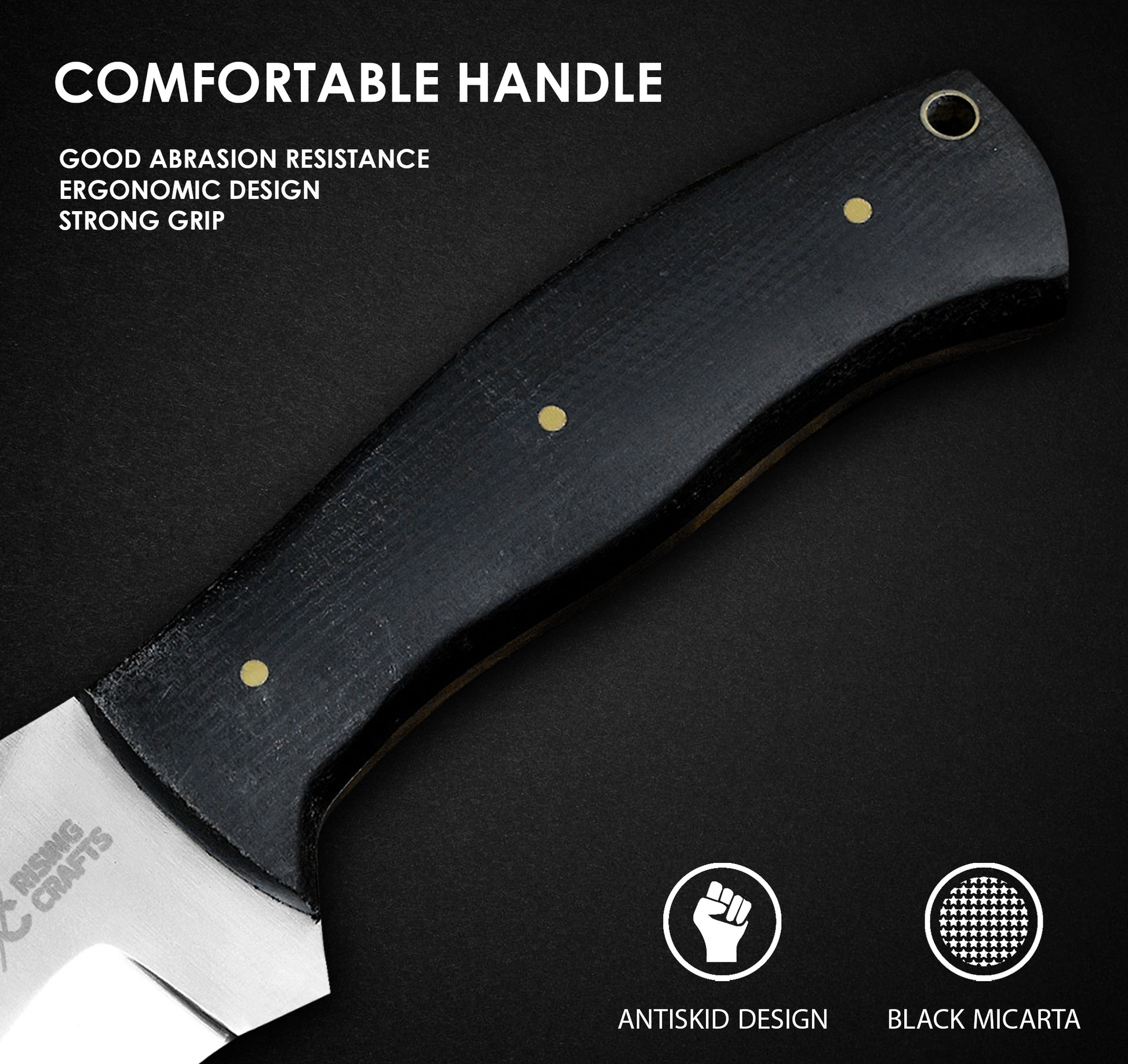 🎖️ RISING CRAFTS This FULL TANG D2 Knife is designed as a HUNTER! It is best as a Hunting, Camping Knife, Tracking, Survival, Bowie, Hunter, Tactical, Tracker Knife a complete solution of an Outdoor Camping Knife. 10 inch total length, 4.75inch handle and 5.25 inch blade. When You're Not Using Your Knife, You Can Put This Beautifully Handcrafted Piece of Art For Display.