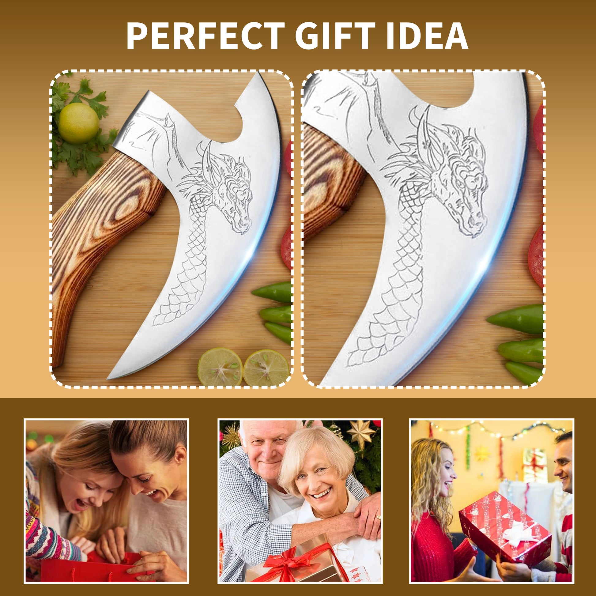 Unique Viking axe for gift, this unique hand-forged small axe is a perfect gift axe, a fantastic gift for all people who love knives, blades, and Viking axes, the durability makes this small axe the perfect butcher axe, kitchen axe, meat axe, gardening axe, pizza axe.